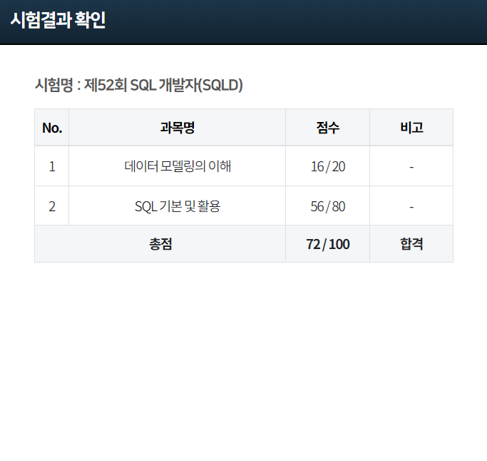 예전부터 한 번 따볼까 생각만 했던 SQLD 시험을 봤었습니다. 3월 9일 52회 차를 치렀었고, 높은 점수는 아니지만 다행히 합격을 했습니다. 총 7일 동안 공부하였는데, 다른 분들께 도움이 되었으면 좋을 것 같아 어떻게 준비했는지 공유해보려 합니다. 목표 설정 우선, 공부에 앞서 현 상황과 어떻게 공부할 것인지, 어떻게 하고 싶은지 생각해 본 결과 공부에 너무 많은 시간을 투자하고 싶지 않다. 고득점이 목표가 아니다. 합격점이 목표다. sql, 오라클에 대한 어느 정도의 사전 지식이 있다. 이 정도의 결론이 나왔습니다. 그래서, 저는 7일이면 충분히 합격할 수 있겠다 생각하였습니다. 정보 탐색 및 교재 구매 그다음 사람들은 어떤 식으로 공부하는지 궁금해 구글링을 해 봤습니다. 많은 분들이 sqld 독..